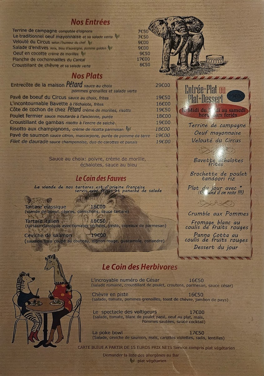 Café Circus is a charming brasserie nestled in the heart of Paris on Rue de Tolbiac. Its menu boasts a delightful array of classic French dishes, with steaks standing out as a particular highlight—tender, flavorful, and cooked to perfection. Diners appreciate the generous portions and the balance of quality and value. The ambiance, enhanced by a spacious, tree-lined terrace, invites guests to relax and savor their meals in a cozy yet lively setting. While the selection leans towards meat lovers, the attentive and friendly staff add warmth, making each visit memorable. Though options for vegetarians and vegans are limited, the overall dining experience excels through a combination of delectable food, swift service, and a welcoming atmosphere. Café Circus truly captures the essence of a Parisian brasserie—simple, satisfying, and spirited.